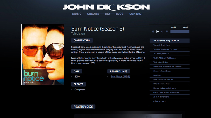 My music has been used over the years in film and television. Chances are you've heard my music and didn't know it. Additionally, I used to work as an actor when I was a kid and have been on TV a few times in different series. This section compiles some of those credits along with any projects related to movies and/or tv. For fun, I also re-score film trailers and scenes from time to time. Since the Black Hole is just for my credits, those little experiements can be found in the "Eye Candy" or "Blahg" sections.